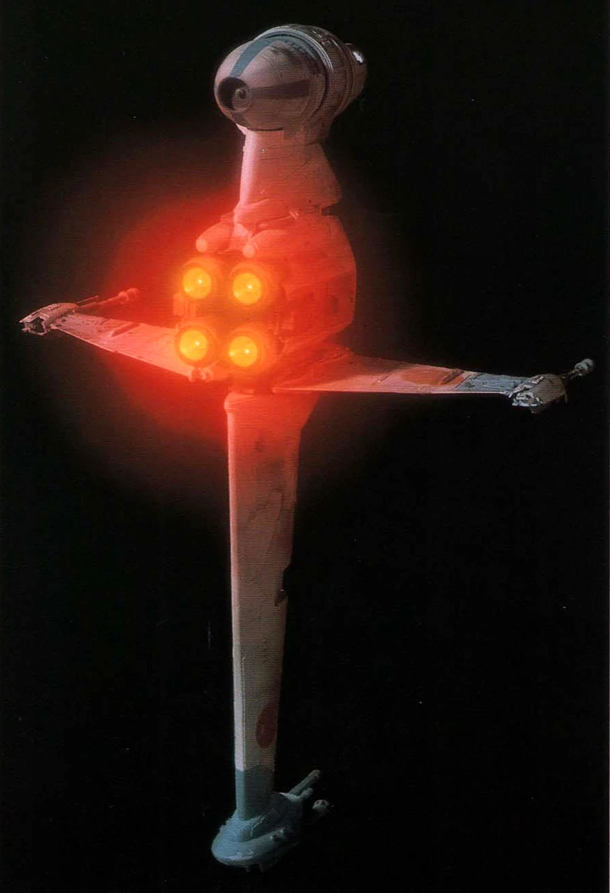 The craft's unusually thin shape was problematic for blue-screen photography; the model tended to blend into the starfield. As a consequence, some planned sequences with the B-wing were cut from the original release of Star Wars: Episode VI Return of the Jedi, and the B-wing is not explicitly shown in action during the Battle of Endor in the film. In fact, after the ships fly away from the still-active Death Star II shield at the start of the battle, the B-wing is hardly seen at all. The rotating cockpit design of the B-wing was based on early concept art for the Millennium Falcon.[21]