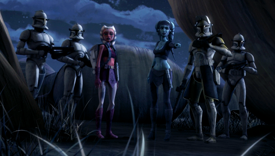 Aayla Secura with Ahsoka Tano and the clone troopers.
