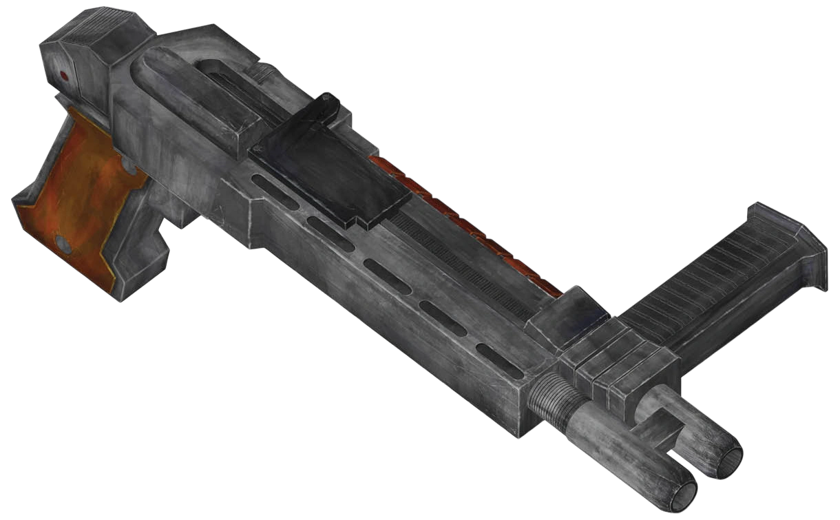 The ACP Array Gun, or Accelerated Charged Particle Array Gun, was a weapon best suited to close range combat.[1] The gun was favored by some Trandoshans during the Clone Wars and Imperial Era.[2] The pirate Kragan Gorr used a customized ACP Array Gun[1] during the New Republic Era when he and his gang worked for the First Order.[3] Although he lost this weapon after his mutiny on the Colossus.[4]