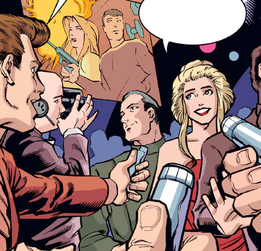 Actress Wynssa Starflare attends the premiere of one of her holodramas.