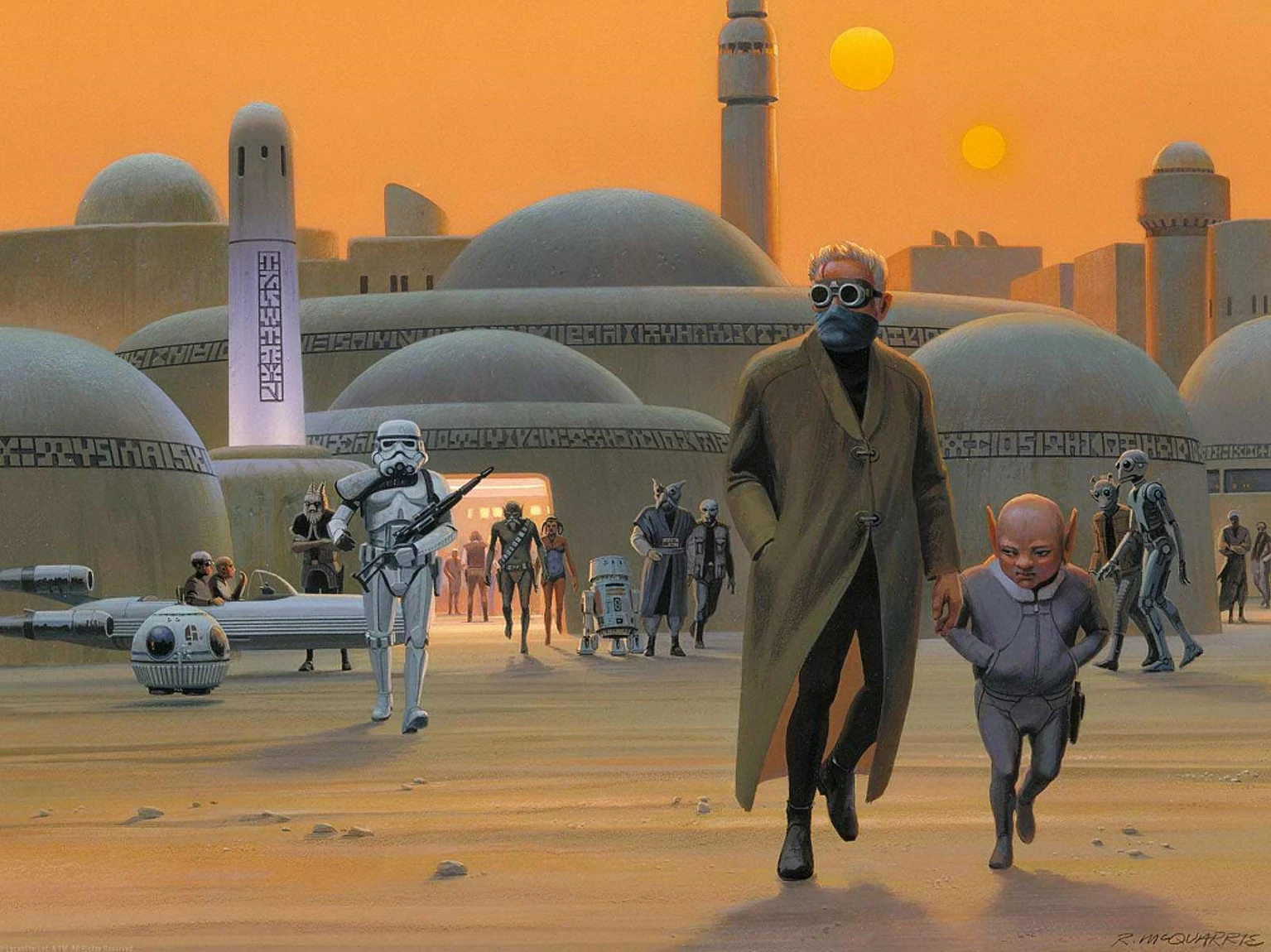 Artoo and Threepio escape the sandcrawler