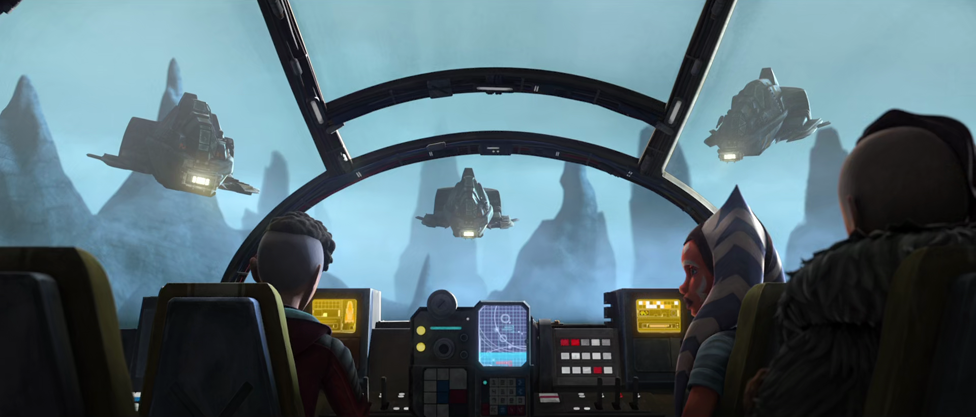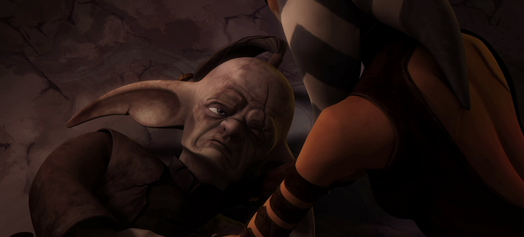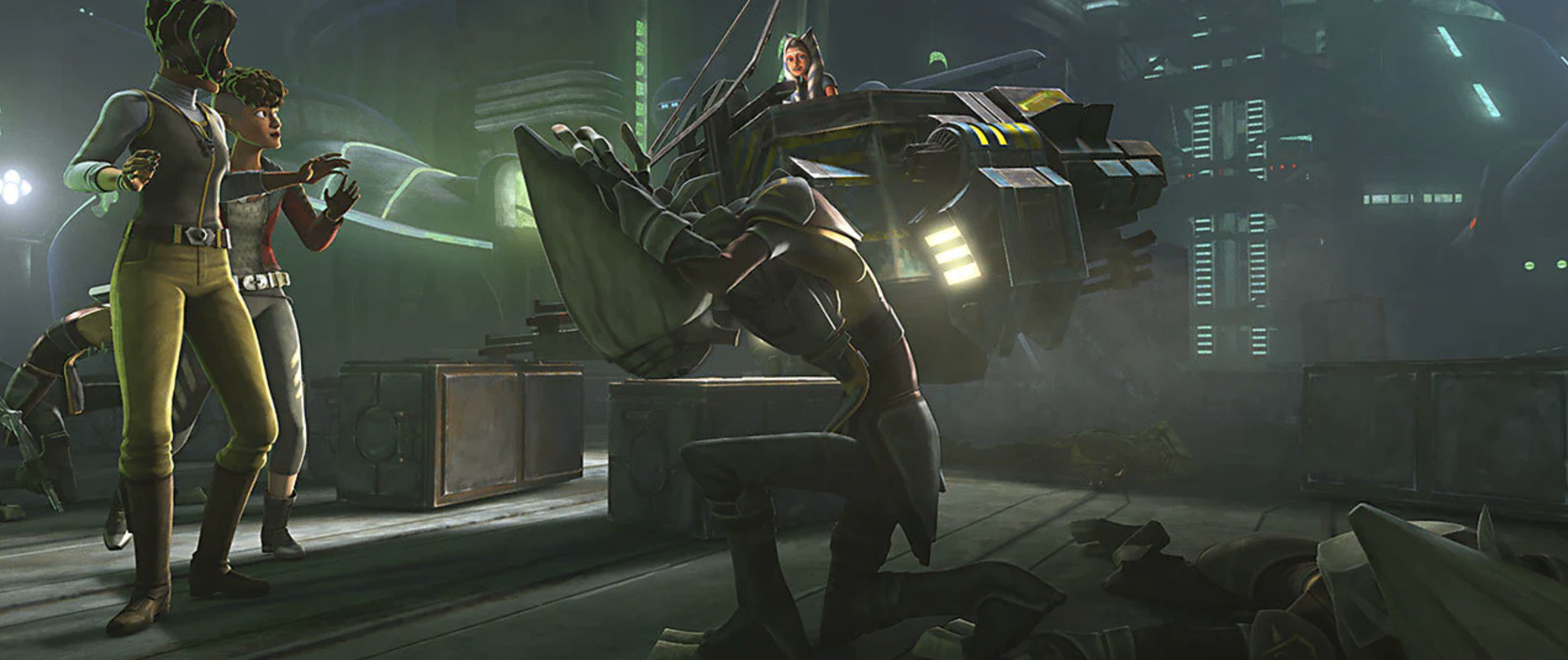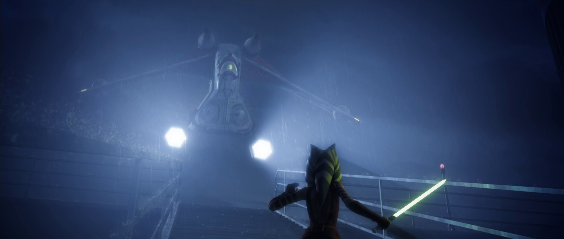 Ahsoka points out the approaching gundark after rescuing Skywalker and Kenobi.