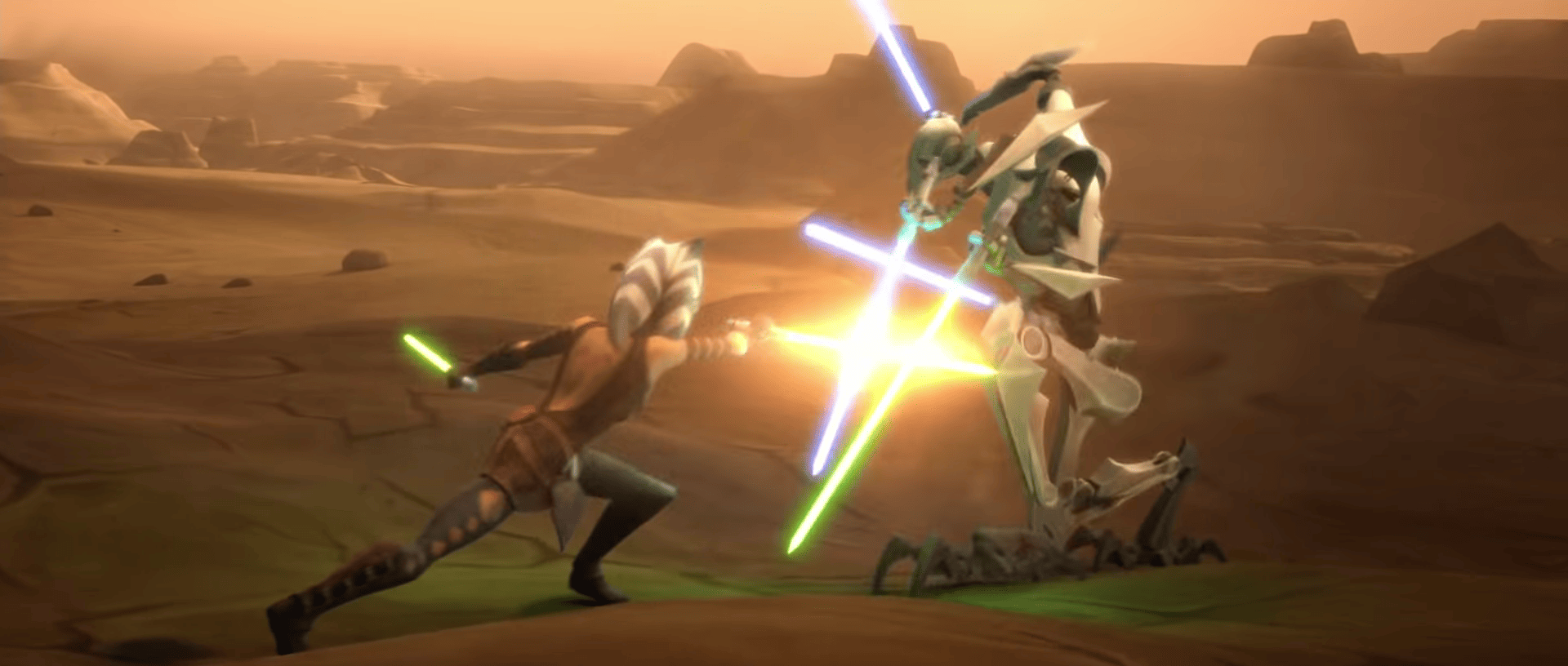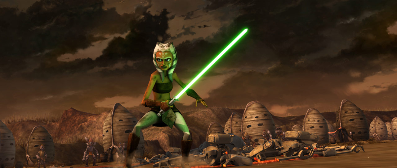 As a commander in the Grand Army of the Republic, Tano found a mentor in Clone Captain Rex of the 501st Legion, with whom she and Skywalker collaborated to lead frontline campaigns against the Confederacy of Independent Systems. In her first command position at the Battle of Ryloth, Tano disobeyed orders and lost her entire squadron of pilots, but she rebounded and helped secure a victory at Ryloth. Her assignments pitted her against a variety of opponents, from General Grievous and Sith apprentice Asajj Ventress to bounty hunters such as Cad Bane and Aurra Sing. Over time, she matured into a respected leader, contributing to key Republic victories like the Second Battle of Geonosis and the Battle of Mon Cala. Tano even died during a series of events on Mortis, but the Daughter, a Force wielder who personified the light side, sacrificed herself to resurrect Tano and bring her back to life.