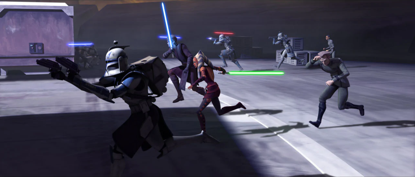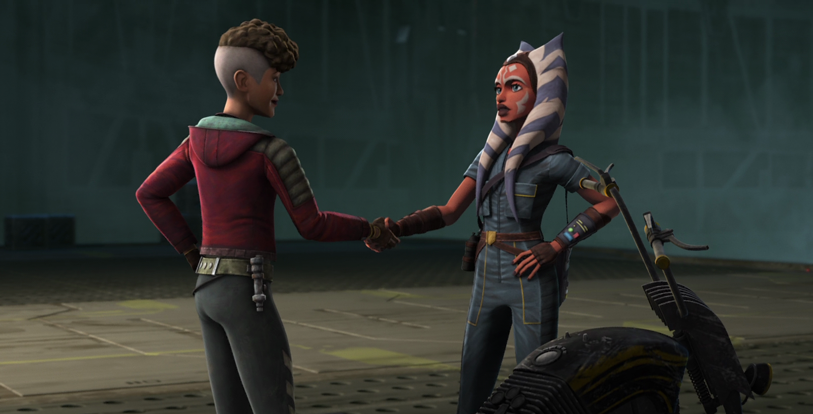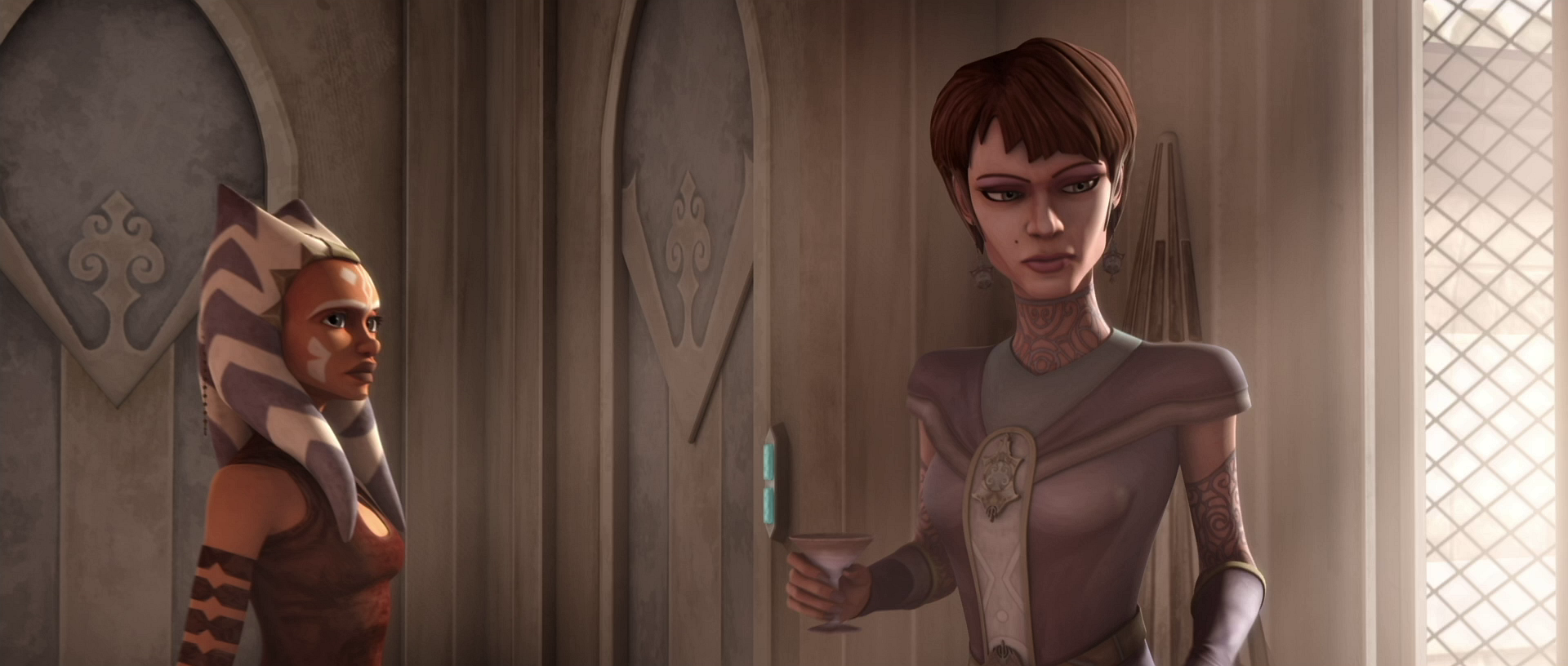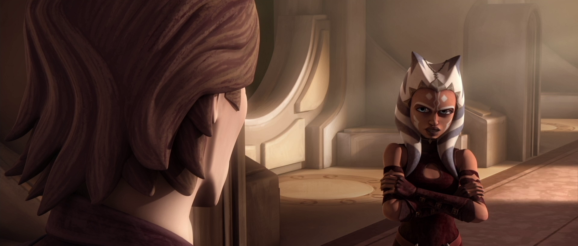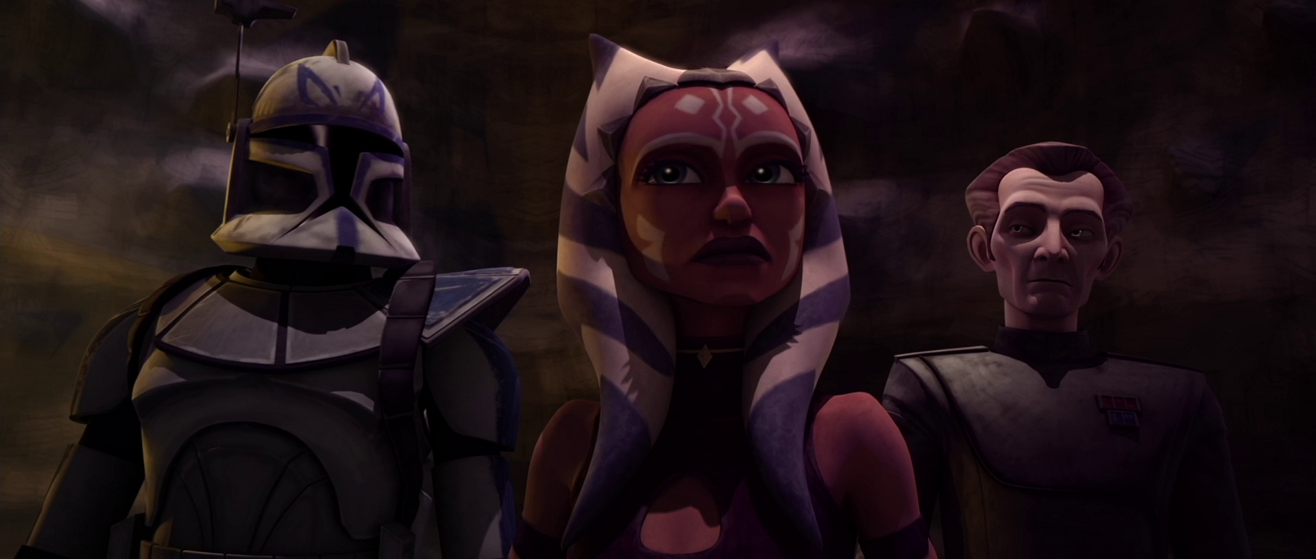 Ahsoka's conversation with Rex in the Star Wars Rebels episode "Twilight of the Apprentice" is meant to mirror their first conversation in the Clone Wars film.[231]