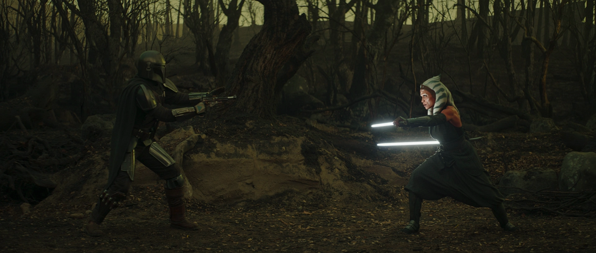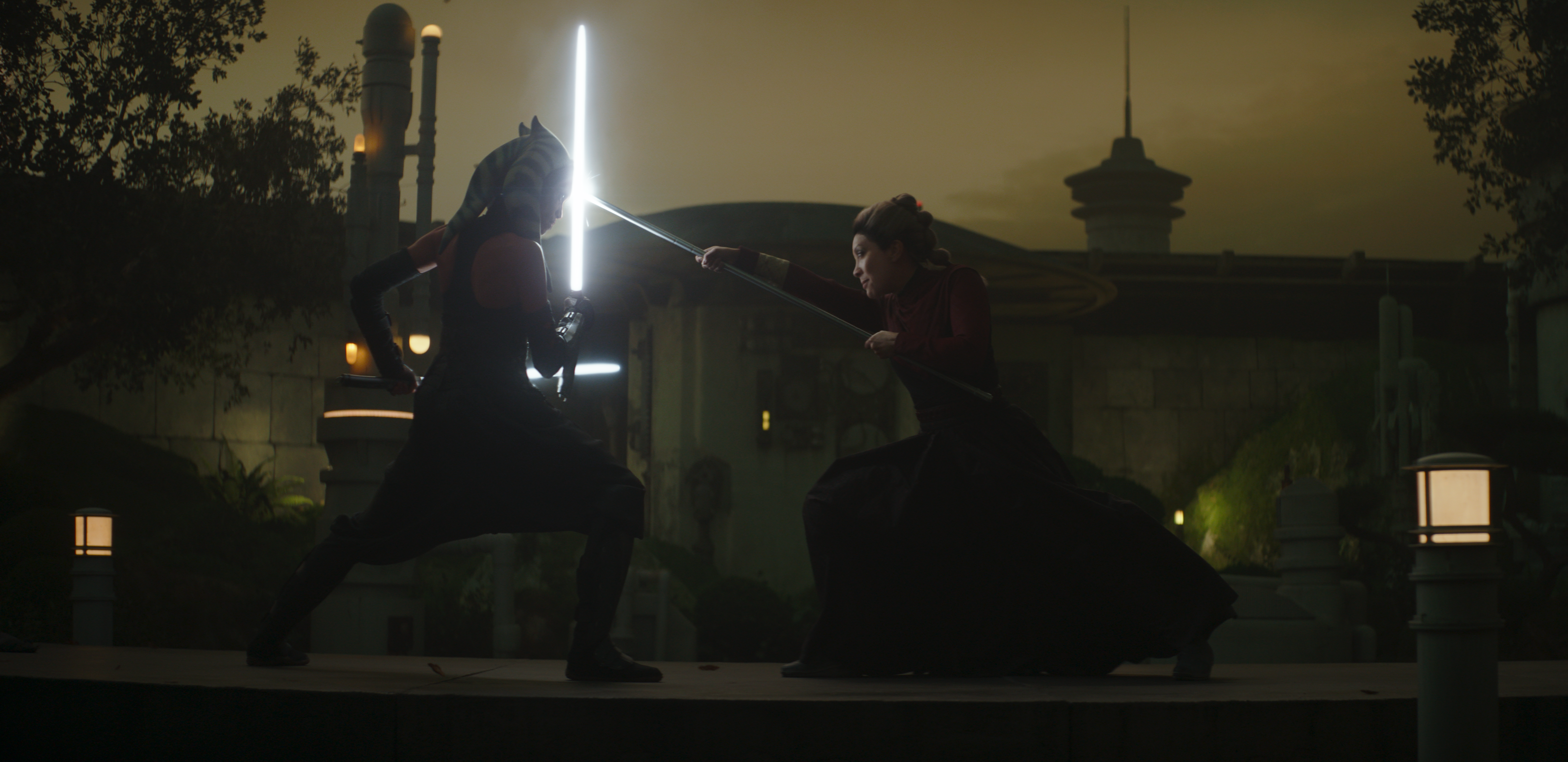 Tano appeared in the episode Chapter 13: The Jedi, which was written and directed by Filoni.[234] According to Filoni, the episode was a test run to see how audiences would react to seeing Tano in live-action.[238] When Filoni wrote the scene in which Tano reveals Grogu's history, he shaped it around when Obi-Wan Kenobi told Luke Skywalker about his father in A New Hope. When Filoni was working on the episode, he knew the actress who plays the Magistrate would have to be someone who can instantly challenge Tano.[235] After being cast as Tano, Dawson watched The Clone Wars, Star Wars Rebels, and the Star Wars saga as preparation.[234] Dawson studied Ashley Eckstein's portrayal of Tano in animation and tried her best to honor it. Dawson was fascinated by how Tano was the center of "this whole other world" shown in The Clone Wars.[235] Dawson played Tano like a wandering samurai and a knowledgeable knight.[235] Filoni pointed to Gandalf from The Lord of the Rings as a touchpoint, and all of this factored into Dawson's portrayal. Dawson wanted to have Tano's playfulness and fun, including her cocky eyebrow. She liked Tano's wisdom and how she is grounded after everything she has gone through. Dawson enjoyed having homages to the different aspects of Tano. Filoni talked about classic samurai films such as Yojimbo, and he described Tano as someone wandering the galaxy helping people in need.[234]