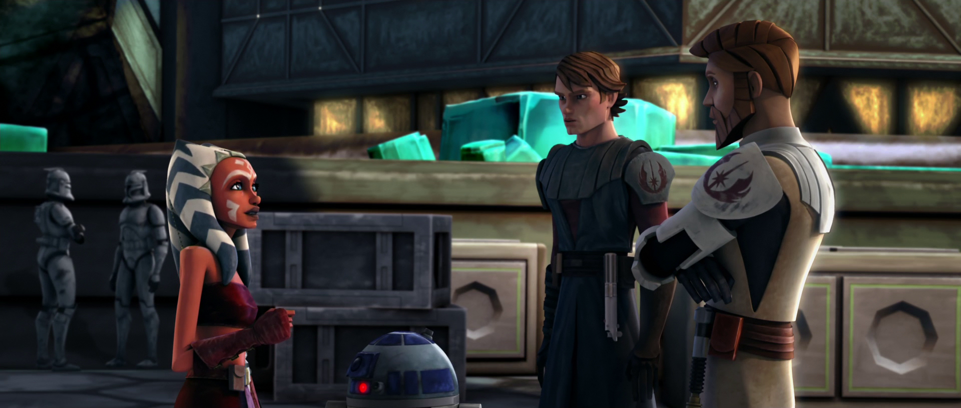 After Skywalker was injured when his starfighter collided with a large piece of shrapnel, he was brought to the Resolute to recover, though R2 was left behind. Tano later accompanied her master along with R2's temporary replacement R3-S6, secretly a spy for General Grievous, on a subsequent salvage operation to try and recover the droid. Tano was optimistic R3 would be a suitable replacement but failed to convince Skywalker that R3 could ever replace R2. The pair boarded a nearby salvaging ship piloted by the Trandoshan scavenger Gha Nachkt. R3, secretly in league with the Separatists, activated several IG-88 assassin droids, which attacked the two Jedi within the ship's cargo hold. After failing to find R2, they left to continue their search, unaware that Nachkt was also in league with Grievous and was secretly hiding R2 from the Jedi. After Skywalker was caught in an ambush by Grievous as a result of R3's sabotage, Tano and Rex were forced to rescue him, once again escaping the General's clutches. Tano continued to stick up for R3, but this only made Skywalker angrier since they were no closer to finding R2.[31]