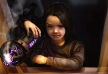 It seemed Ailyn's father walked out on the family (in actuality, Fett was exiled from Concord Dawn) circa 12 BBY.[4] As a result, Ailyn grew to hate her father. She lived with her mother until she was a teenager.[3] Sometime between the age of five and fourteen, she and her mother then met a man named "Quinny"[5]. Ailyn then helped "Quinny" and her mother fight off a hit team of Devaronians by using a small ion cannon. After successfully fighting them off, Ailyn, her mother and Quinny then decided to go to a safe house in a nearby village.[6]