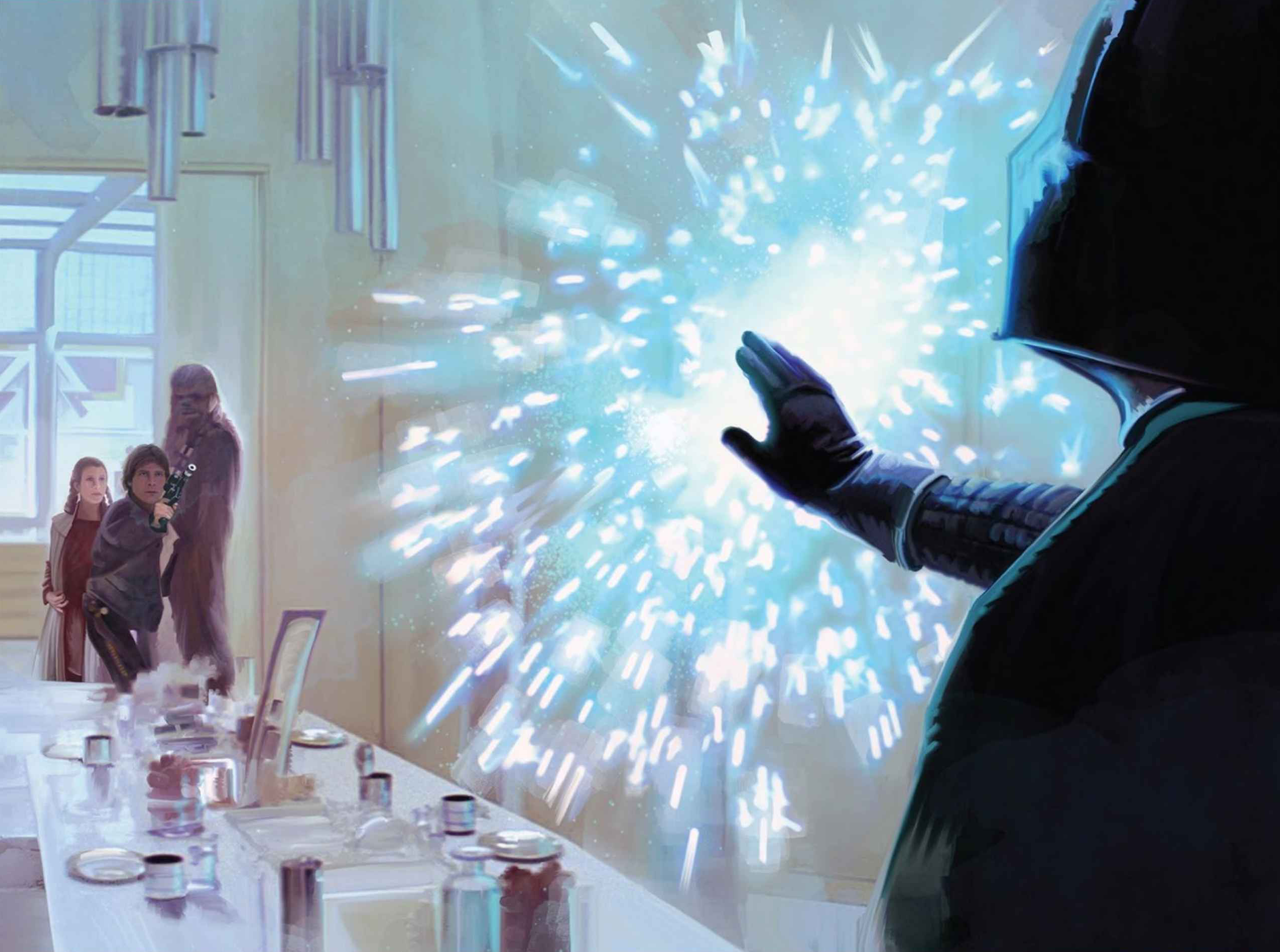 Concept art of Darth Vader fighting the character that would become Luke Skywalker