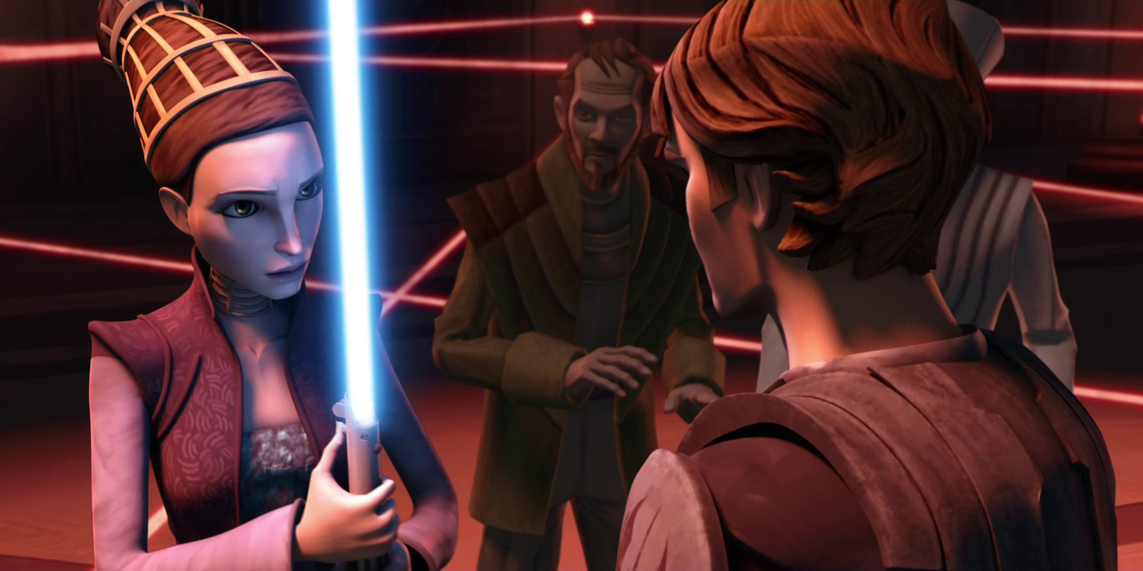 During the Clone Wars, Skywalker and Amidala rarely saw each other due to the Clone Wars and keeping their secret. Skywalker would rescue and protect Amidala from numerous dangers such as General Grievous,[58] the Zillo Beast,[85] and the Blue Shadow Virus.[73] Skywalker also felt jealous towards Amidala's close friend, Senator Rush Clovis of Scipio. Despite Amidala's assurances that it was over between her and Clovis, Skywalker felt uneasy when she accepted the Jedi Council's mission to spy on Clovis. After leaving Cato Neimoidia, Skywalker assured Amidala that he never doubted her. Later, however, Skywalker did not completely trust Clovis with Amidala.[158] Skywalker attacked Clovis when he tried to kiss Amidala, but Amidala thought they should not see each other for a while.[157] When Clovis appeared to have rejoined the Separatists, Skywalker led his forces and personally attempted to rescue Amidala.[159]