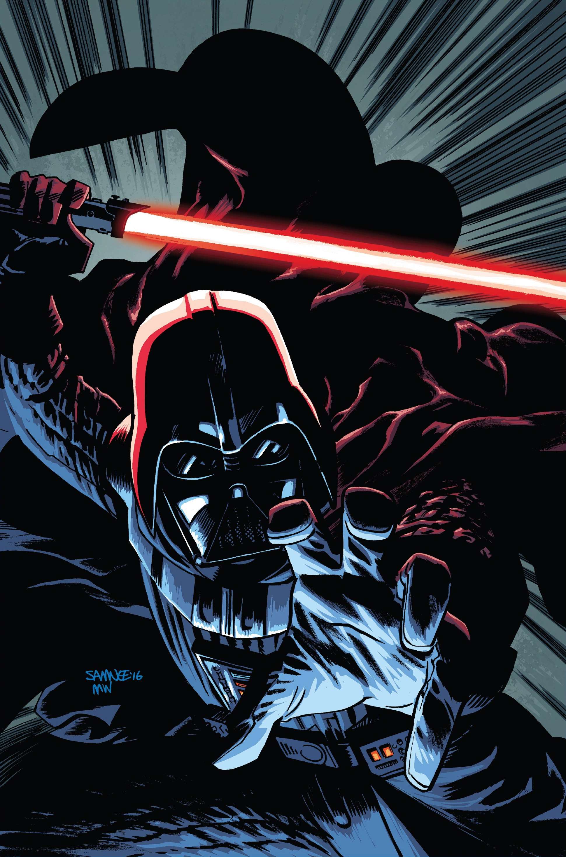In Are You Scared, Darth Vader? a number of classic villains such as a wolfman and a "ghost" attempt to terrorize Vader, only for him to either be confused by them or simply not scared. As the story comes to a close, however, readers discover what really has the power to terrify Lord Vader.[384]