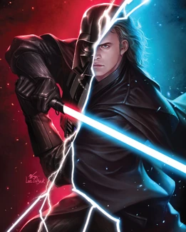Skywalker was particularly skilled in Form V—both the Shien and Djem So variants.[357] He was able to deflect not only blaster fire with ease,[13] but also shots from freighters.[208] He made good use of Djem So's strength-based strikes and counterattacks to overpower or overwhelm his opponent.[146] Skywalker also used Jar'Kai on some occasions: He used Kenobi's lightsaber during his first duel with Count Dooku on Geonosis,[13] he wielded Barriss Offee's own lightsaber against her along with his own,[146] and he wielded Dooku's lightsaber in addition to his own to execute him after defeating him on the Invisible Hand.[12]