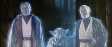 Sebastian Shaw (left) as the "old" spirit of Anakin Skywalker