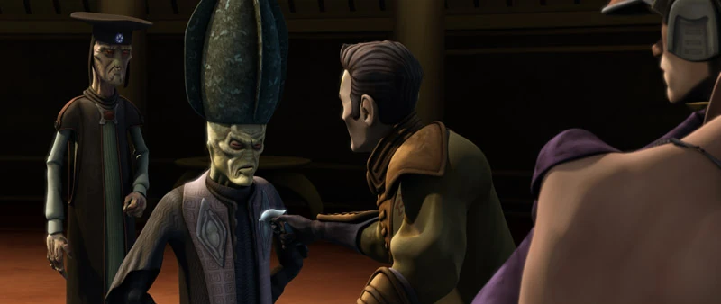 Upon arriving on Dallenor, Kenobi and Skywalker encountered a female Togruta archaeologist named Clatriffe. She was glad that they arrived so they could take the holocron away due to the fact that it was causing problems. She explained that the local pirates wanted to get it and she had to hire local guards to keep them at bay. Kenobi ordered Skywalker to stay outside to keep watch whilst he and Clatriffe went inside the facility to obtain the holocron. After they went inside, Skywalker noticed that the pirates had arrived.[40]