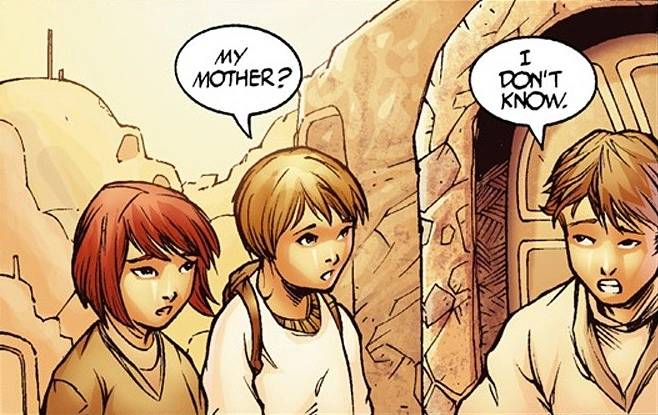 Around 34 BBY, when Skywalker was seven, Watto traveled to Anchorhead in order to bid on parts from a recent crash, leaving the boy with a long list of chores to do. However, Skywalker was able to program the droids around the shop to finish the chores by midday, allowing him to take his pack that his mother had filled with meat pies and fruit and meet with his friend Amee for a picnic. In a small canyon near the city that had a strange tree with flickering leaves, the two ate Shmi's meat pies and turnovers made by Amee's mother Hala, but when they returned to Mos Espa, they found the city almost empty. From their neighbors, the two children learned that the pirate Krayn had conducted a slave raid, capturing a number of slaves and overriding their transmitters with their own. Terrified for his mother's safety, Anakin raced home but was relieved to find Shmi safe and sound at their house—unlike Amee's mother Hala. When the boy noticed Amee and Hala's master, Yor Millto, dismissing the abduction of Hala as a "nuisance," Skywalker resolved to remember every moment of that day, save the look of terror on his own mother's face, in order to fuel his ongoing struggle as a slave, and his eventual quest to free slaves.[39]