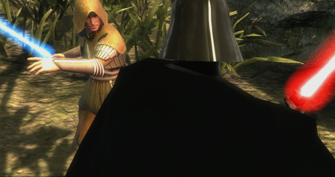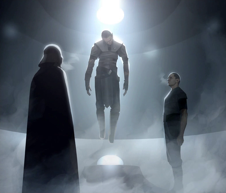 Hayden Christensen (left) as the "new" spirit of Anakin Skywalker (canon).