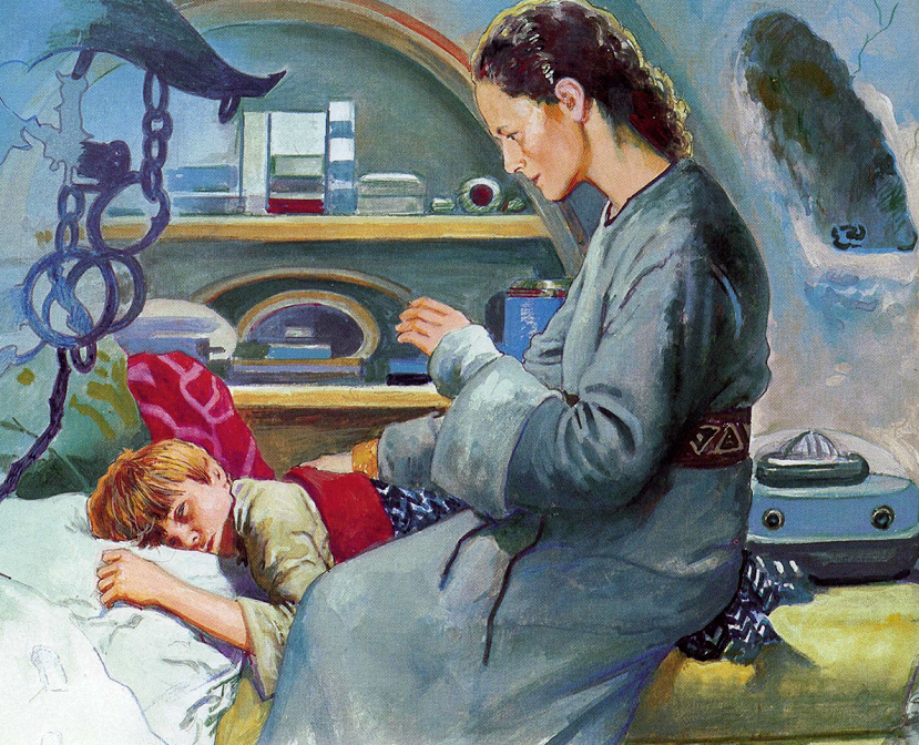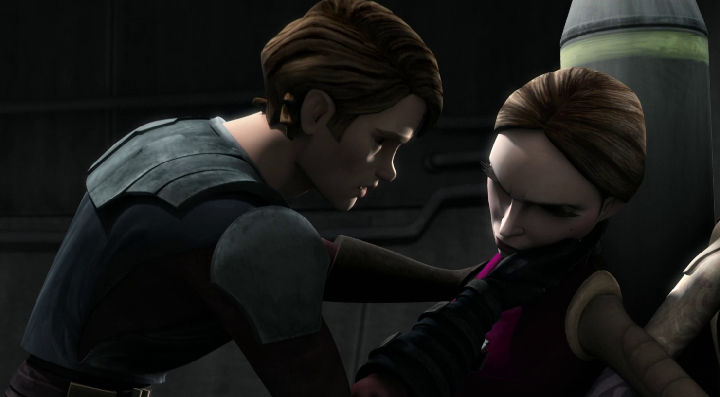 Later that night, aboard the ship, which Skywalker learned was the personal starship of the Queen of the planet Naboo, Skywalker struggled to fall asleep in the central chamber, as the ship's temperature was radically different to the constant heat of Tatooine that he was used to. As he huddled in silence and wondered whether leaving was a mistake, Skywalker witnessed Naberrie enter the room and watch a recording of a plea for help from the Naboo official Sio Bibble. She soon noticed him and gave him her overjacket as a blanket, and the two discussed the Trade Federation's invasion of Naboo and Naberrie's hopes that the Republic's Galactic Senate could resolve the crisis. Skywalker gave her a japor ivory wood pendant that he had carved for her so that she would remember him, and Naberrie comforted him as he once again began to cry as he remembered his mother.[36]