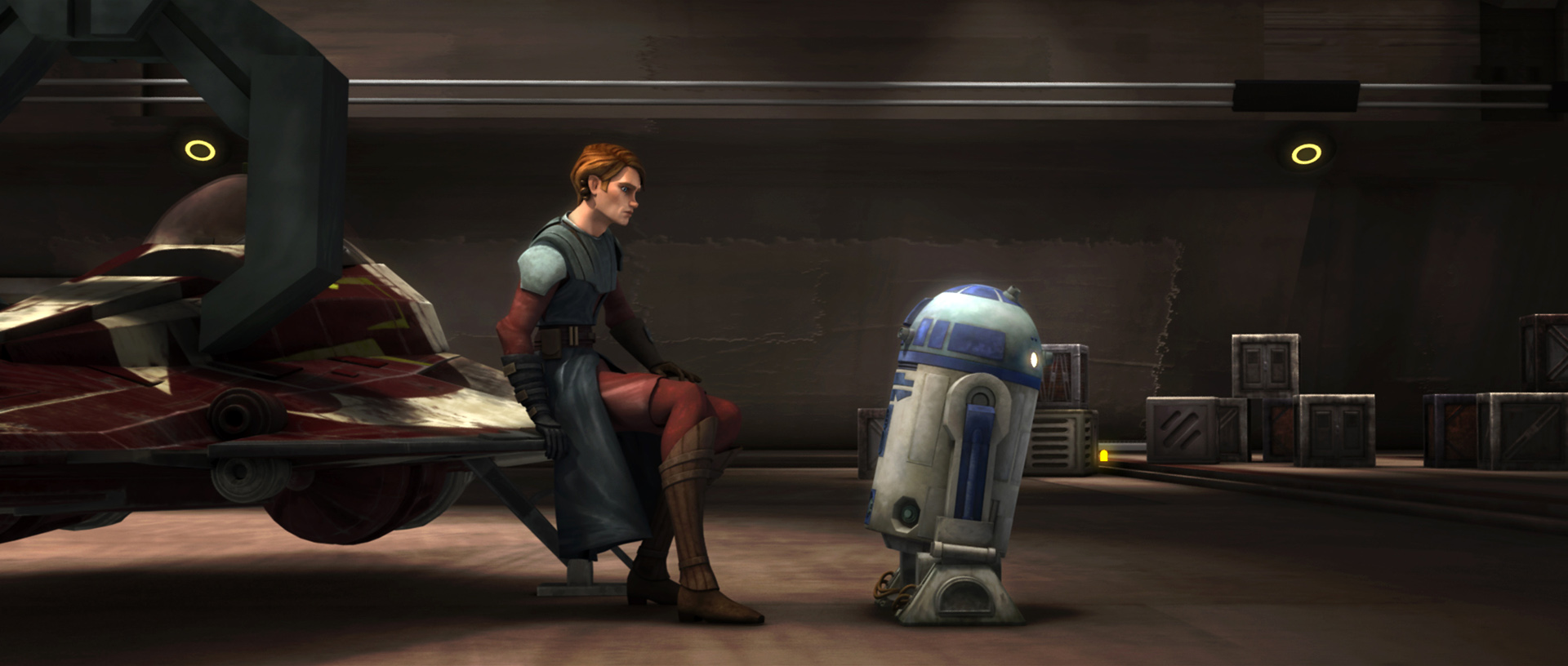 Buying the boys more ruby bliels, the pilot told them of his exploits in the Republic Starfighter Corps, speaking of other planets and Jedi Knights. The three children spent so much time listening to the man's stories that Skywalker arrived home late for dinner, earning a reprimand from his mother. Shmi once again expressed her opposition to his racing, but Anakin reminded her that Watto would make him race. A little over a week later[36]—by which time Skywalker had C-3PO's intelligence and communication processors repaired—an angry Watto sent the boy out to Mochot Steep to trade with the Jawas.[36]