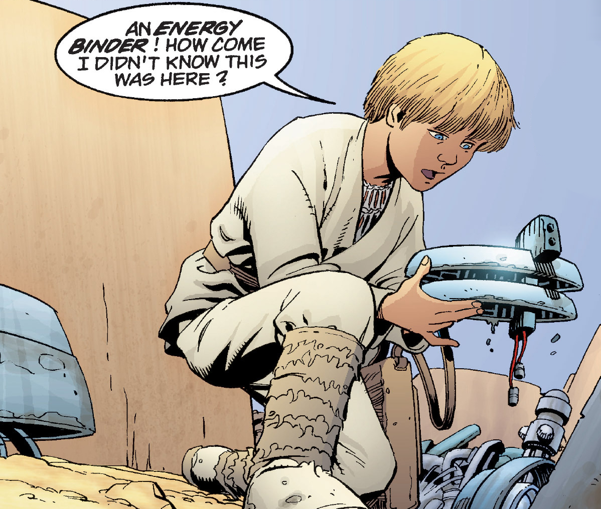 Skywalker was also known to be an exceptional mechanic. He could fix anything from a damaged droid motivator to a malfunctioning repulsorlift. The young Skywalker quickly understood how things worked, and his strong knowledge of mechanical systems coupled with his closeness to the Force allowed him to pilot most vehicles and starfighters. He used his droid hydrospanner wrench to reassemble his Otoga 222 and built welding goggles with many settings from scratch to use for precise work and to diagnose mechanical problems. At the age of nine he created, even with limited resources, the protocol droid C-3PO to aid his mother.
