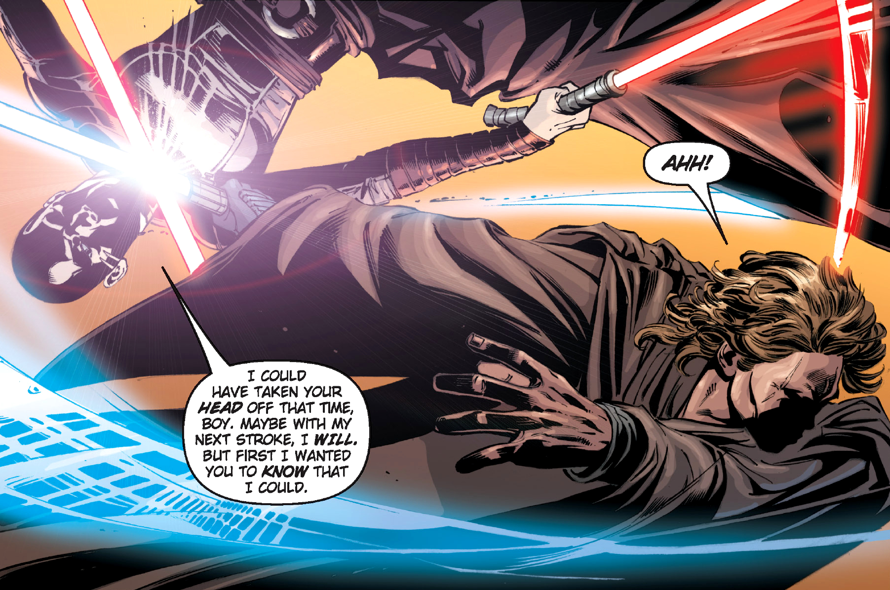 - "Anakin, as Skywalker, as a human being, was going to be extremely powerful, but he ended up losing his legs and an arm and became partly a robot. So a lot of his ability to use the Force, a lot of his powers, are curbed at this point, because, as a living form, there's not that much of him left. So his ability to be twice as good as the Emperor disappeared, and now he's maybe 20 percent less than him. So that isn't what the Emperor had in mind. He wanted this really super guy, but that got derailed by Obi-Wan. So he finds that, with Luke, he can get a more primo version if he can turn Luke to the Dark Side. You'll see, as this goes on, Luke is faced with the same issues and practically the same scenes that Anakin is faced with. Anakin says yes and Luke says no."