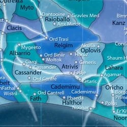 The Atrivis sector was located within an intersecting portion of the Outer Rim Territories[1] and the New Territories regions.[2] It contained the Devon, Fedje, Fest, Generis, Gibbela, Gree Baaker, Hethar, Horuz, Iridium, Kardoa, Mantooine, Markbee's Star, Moltok, Nam'ta, Shar'Ack, Spefik, Squarr, and Vuchelle systems, all situated at the coordinates L-5 on the Standard Galactic Grid.[1]