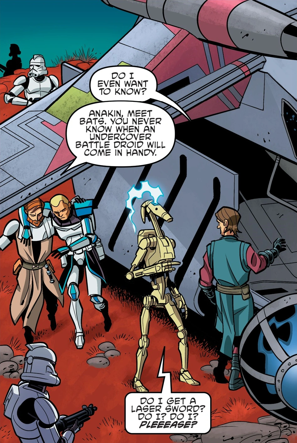"A battle droid with a conscience. Now, I've seen everything." - ―Obi-Wan Kenobi and Clone Captain Rex, regarding "Bats"