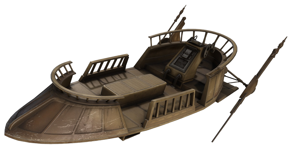 Manufactured by Ubrikkian Industries,[1] the Bantha-II cargo skiff was common outside the Galactic Republic, and later the Galactic Empire, and were used by the Hutt Clan and the Zygerrian Slave Empire.[3] The Hutt crime lord Jabba Desilijic Tiure used a number of the rugged skiffs equipped to survive the heat and sandstorms of the Tatooine deserts.[1]