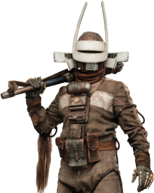 Batcha Hunaris was a male individual who worked as a guard at a fueling depot on Orinda. When the depot was raided by the Cloud-Riders rebel gang led by Enfys Nest, Hunaris decided to tag along with them and became a member.[1] In 10 BBY,[3] he and the other Cloud-Riders traveled to the icy world of Vandor in order to try and steal a shipment of the hyperfuel coaxium from the Galactic Empire in order to try and fund resistance against the Empire and criminal syndicates like Crimson Dawn. Traveling on swoop bikes, the gang descended upon the Imperial 20-T Railcrawler conveyex transport ICC-5537, which was carrying the coaxium; however, they discovered that they had been beaten to their target by a group of criminals led by Tobias Beckett and working for Crimson Dawn.[2]