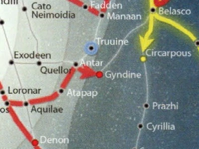The Battle of Gyndine makes its only appearance in The Essential Atlas. It only illustrates the battle on the galactic map rather than in prose.