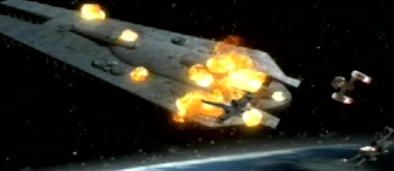 The ship launched, with Kyle Katarn in it, and headed for the Yavin system. On board, Katarn eventually managed to alert Rogue Squadron of the Doomgiver, and soon made his way to the detention levels of the ship. After rescuing a still living Jan Ors and learning of the attack on Yavin 4, Katarn set out to disable the shields. In the shield generator room, Katarn met and battled Galak Fyyar, who was operating a mechanical suit made from cortosis. The duel resulted in Fyyar's cortosis suit exploding. After killing Fyyar and disabling the Doomgiver's shields, Katarn and Ors were able to reach an escape pod and evacuate the doomed ship. With the shields down, Rogue Squadron was easily able to destroy the Doomgiver.[1]