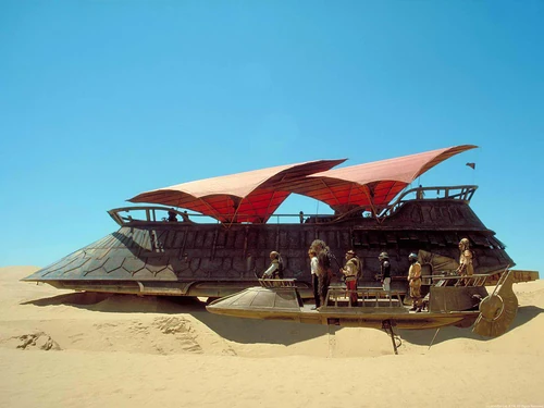 The Battle of the Great Pit of Carkoon first appeared in the beginning of the 1983 film Star Wars: Episode VI Return of the Jedi, the final installment of the Star Wars original trilogy.[1] Though popularly assumed that George Lucas thought up the battle, it was, in reality, the idea of writer and director Richard Marquand and Lawrence Kasdan. The fact was eventually revealed via transcripts of meetings from The Making of Return of the Jedi.[19]