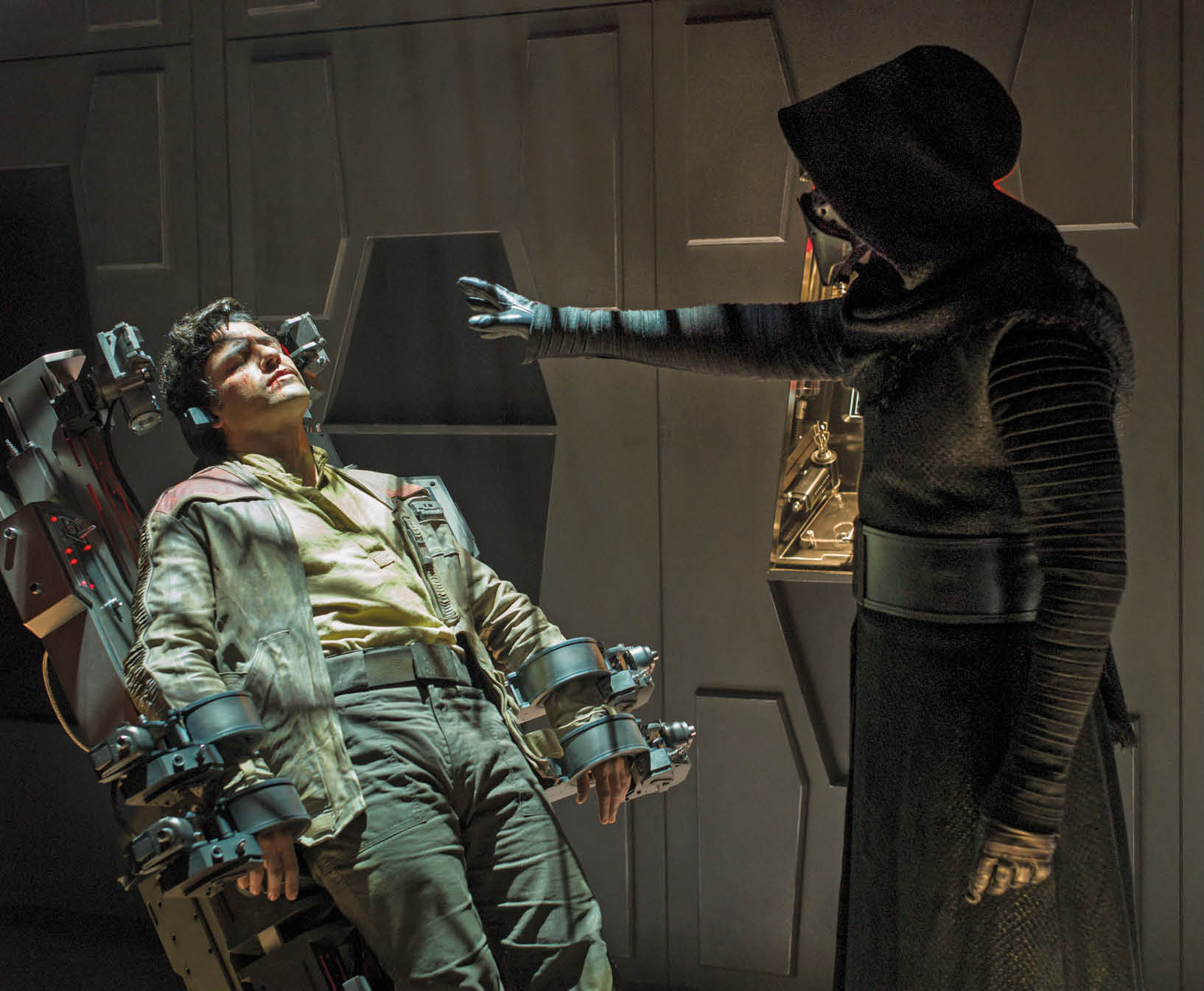 Ren excelled in interrogation, as he could telepathically invade the minds of his prisoners and psychologically torture them into revealing withheld information. His abilities also allowed him to render opponents unconscious without harming them, as he did to Rey on Takodana, causing her to fall asleep with a wave of his hand so he could capture her without resistance.[9] Although Snoke was capable of probing his apprentice's mind, Ren was able to deceive his Master into believing that he intended to kill Rey when his actual target was Snoke himself.[33] He used his Master's reliance on reading his every thought, twisting it to his advantage and ultimately outmaneuvering the Supreme Leader.[6]