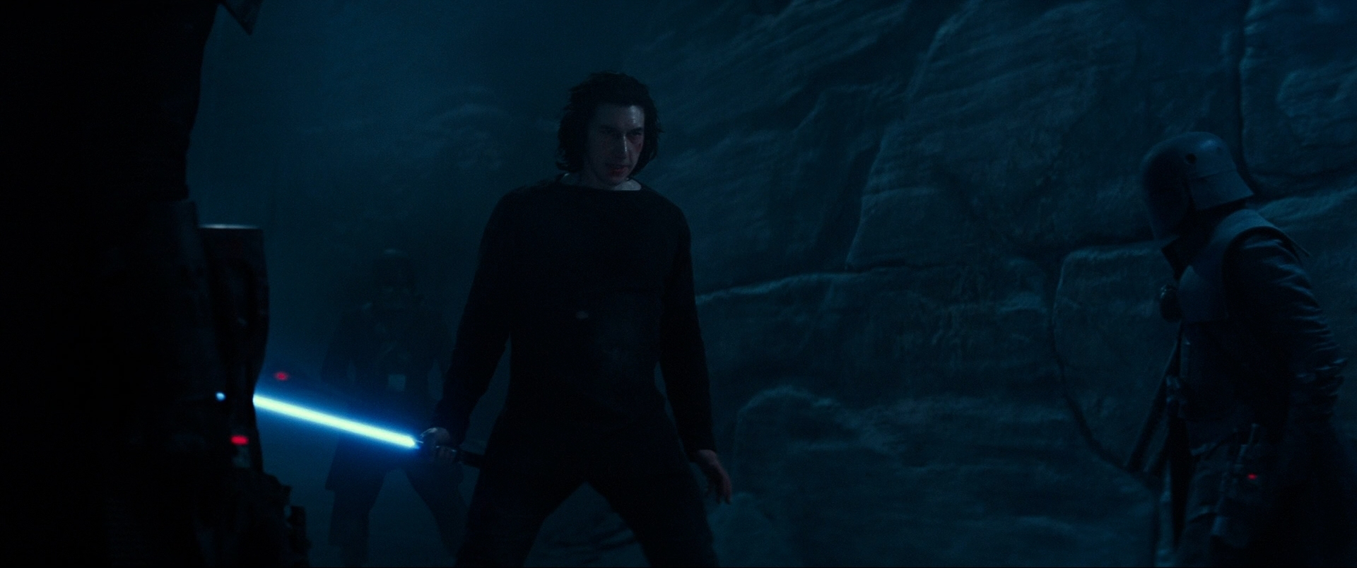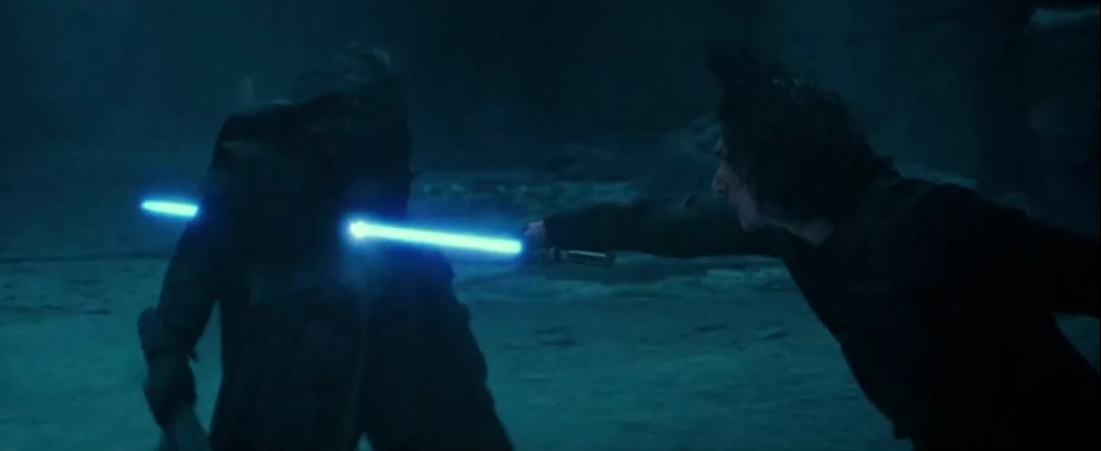 A group of marauders, dressed in black, had entered the outpost after the two Jedi and their explorer companion. A warrior calling himself "Ren" spoke on the group's behalf, declaring that the outpost and its contents were claimed by the Knights of Ren. Rejecting the Knights' claim, Skywalker drew his green-bladed lightsaber and introduced himself as the last Jedi, and therefore, the heir to all that belonged to the Order. Solo also activated his lightsaber, but remained out of the ensuing fight, as Skywalker instructed him to protect San Tekka.[24]