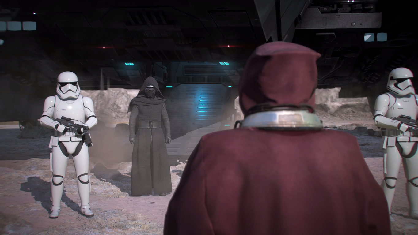 In the skit, "Matt" comments to a group of stormtroopers that a friend told him that he saw Kylo Ren in the shower and that Ren "had an eight-pack" and was "shredded." These lines proved a source of retroactive amusement when The Last Jedi featured a scene in which Ren appears to Rey shirtless and sporting a heavily muscled chest. However, director Rian Johnson stated that the scene was not merely gratuitous, but was intended to establish that through their Force-bond, Rey could actually see his body and not simply hear his voice or see just his face and eyes.[139]
