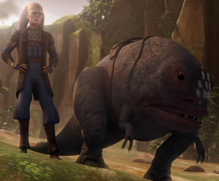 During the Clone Wars, when the Confederacy of Independent Systems invaded the planet Ryloth, the Twi'lek Resistance, led by Cham Syndulla, had blurrgs in their care that they used as mounts. They set up a hideout inside a ruined Separatist ship and had several stables for their blurrg mounts inside.[4]