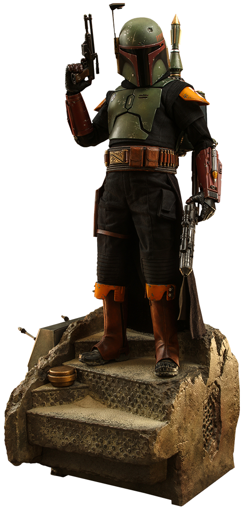Fett tried to prevent Solo's rescue by the Alliance to Restore the Republic, only to fall into the Great Pit of Carkoon when the smuggler accidentally slammed a pole into the bounty hunter's jetpack, causing it to malfunction. Although Fett survived his ordeal with the man-eating sarlacc, his armor was sold to Cobb Vanth by Jawa scavengers. Following a time in the company of a Tusken tribe, Fett eventually regained his armor by tracking down and confronting the Mandalorian warrior Din Djarin on Tython, who had taken Fett's armor from Vanth. After helping Djarin to rescue the foundling Grogu from the clutches of Moff Gideon, the ex-bounty-hunter returned to Tatooine where he killed Bib Fortuna and claimed the late Jabba's throne as Daimyo, with Fennec Shand by his side. Now the head of his own gotra, Fett intended to rule the territories of Mos Espa by winning the people's respect, though he would face several major challenges to his position owed to the two-facedness of mayor Mok Shaiz such as the Twins' bid for power and the expansion of the Pyke Syndicate's spice trade. Ultimately, though, Fett overcame all obstacles - including a confrontation with his old mentor, Cad Bane - and emerged victorious with the help of his associates, gaining the appreciation and approval of Mos Espa's denizens.