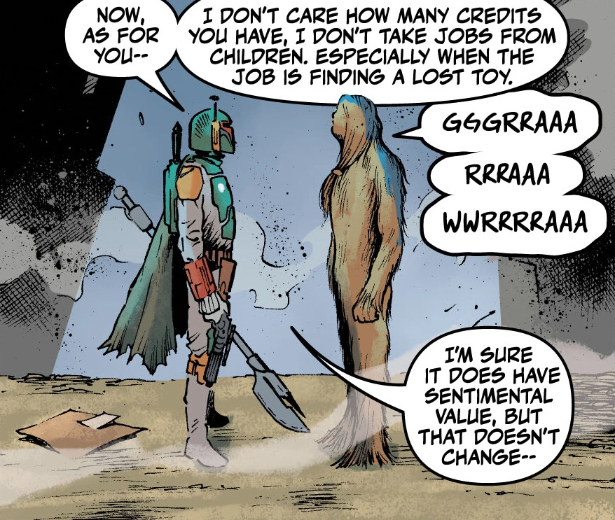 - "Boba Fett! Please, we need your help! And we've seen what you do—you hunt bad men, murderers, criminals—"