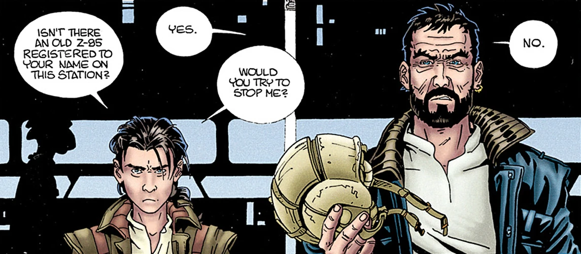 Terrik's joy at seeing his daughter again was blunted, however, by her companion—Corran Horn, the son of the man who had sent him to Kessel. Horn barged into the negotiations and, not realizing who he was talking to, tried to scare Terrik off by pointing out—to Mirax's father—who Mirax's father was. Terrik didn't know whether to laugh or throttle the man, and finding out that he was not just Mirax's business partner, but her romantic interest, didn't help matters. Mirax quickly defused the situation, however, by pointing out that they were there on Wedge's behalf. Wedge, alongside Corran and the rest of Rogue Squadron, had resigned his commission in the New Republic military and taken up a personal campaign against former Director of Imperial Intelligence Ysanne Isard, who had set herself up at the head of a bacta cartel on the planet Thyferra. Terrik decided that whatever Wedge wanted, Wedge should get, and persuaded Darklighter to give the weapons to Mirax at a vastly reduced price—and only for that much because Mirax refused to take them for free.