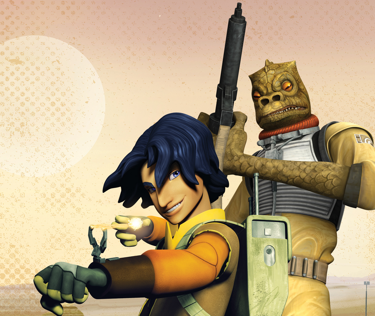 After landing in Lothal Capital City's spaceport, Bossk encountered a young Force-sensitive Human street urchin named Ezra Bridger. Having been orphaned at the age of seven following the death of his parents, Ezra made his living on the streets of Capital City as a con artist. Posing as an official guide to Lothal, Ezra agreed to lead Bossk to a joint called Ake's Tavern, where "Shifty" Takkaro was reported to be hiding. In return, Bossk promised to pay Ezra a thousand credits and paid the youth an upfront installment of five hundred credits. While traveling on a speeder bus to Ake's Tavern, Bossk paid Ezra the remaining half of his fee.[6]