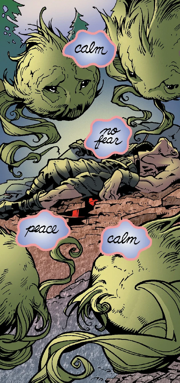 However, that changed when the Sith forces began to use powerful dark side rituals to defeat the Jedi forces. Led by Darth Bane, the Sith unleashed an unnatural firestorm that destroyed huge swaths of forest, killing many Jedi in its flames, and forcing the others into exposed ground. The effect on the Bouncers was devastating. The raging fires killed most, and those that survived were driven mad by the cataclysm. Their ability to comfort was horribly distorted. They began to project terror, panic, and terrible nightmares to the sick and wounded. The Jedi were forced to kill the tormented beings in order to maintain their own morale.
