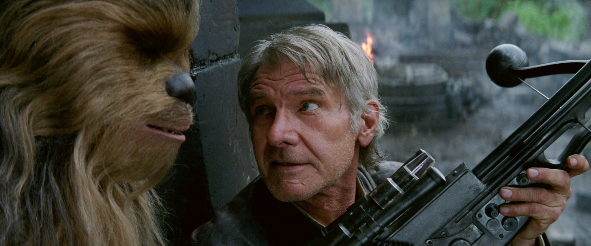 During a skirmish on board the Eravana and later in a battle on Takodana, Han Solo used Chewbacca's current bowcaster, which he quickly came to enjoy firing due to its strong firepower. After Solo was killed during the Battle of Starkiller Base by his son, Kylo Ren, Chewbacca fired at Ren in anger, shooting his bowcaster[4] with the intention of killing the dark side adept. Nevertheless, Ren managed to survive being hit.[10]