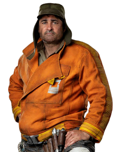 Brasso was a burly, hard working human male with greying hair, green eyes and brown skin.[12][13] He was a close friend of Cassian Andor and his adoptive family including Maarva Andor and her droid Bee, whom he had a particularly close relationship with.[8][14] While he protested his friend's shady dealings and regrettable misadventures, he was still willing to assist his friend and lie on his behalf.[12][14]