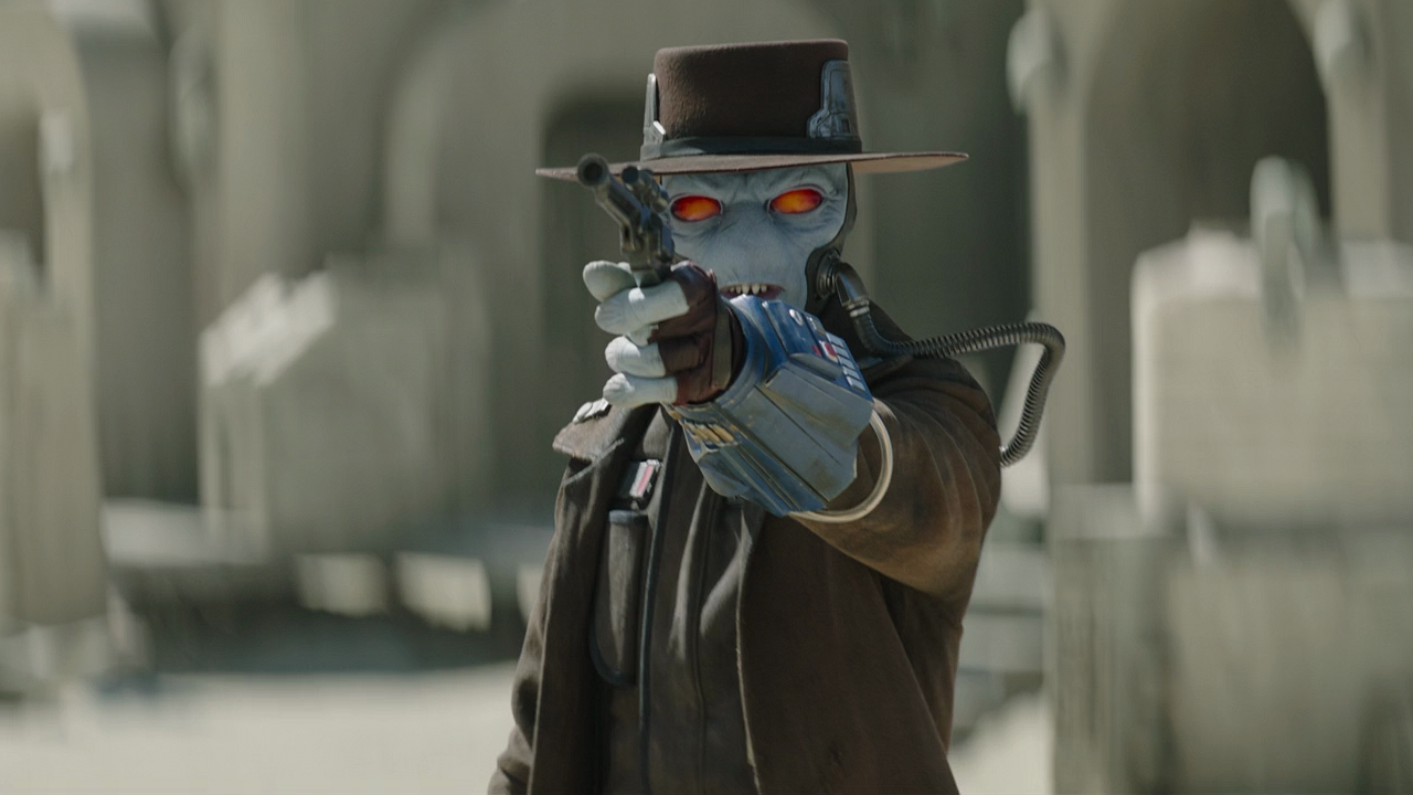 Five years after the fall of the Empire, Cad Bane was still active as a bounty hunter. Working for the Pyke Syndicate on Tatooine, Bane was sent to Freetown after the local marshal, Cobb Vanth, stood against the Syndicate. A standoff ensued after Bane strode into the center of town and was greeted by Vanth. When Vanth refused a bribe to stay neutral in the coming fight between Boba Fett and the Syndicate, the two drew their weapons, but Bane was much quicker. He fired several shots, killing Vanth's deputy, Scott, and downing Vanth. Before leaving, Bane declared to the townspeople that Tatooine was under the control of the Syndicate, and they would be left alone as long as they did not impede the spice trade, stalking away as the injured Vanth received aid.[15]