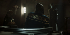 Bane contacted Palpatine again and told him that HELIOS-3D would come and take Senator Orn Free Taa to the prison where Ziro would be released with the pardon disk as part of a hostage exchange. Bane was then told by Alama that Skywalker did not have his lightsaber with him. Bane sent Sing with Alama to find Skywalker and then had HELIOS-3D take Taa to the prison where Ziro was to be freed and return to the Senate Building to pick up the rest of the team.[27]