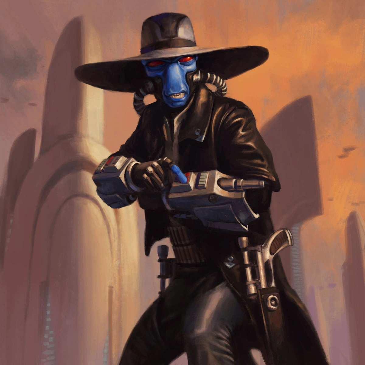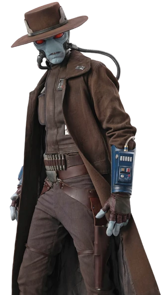 Cad Bane was a Duros male bounty hunter and mercenary in the galaxy whose career spanned from the fall of the Galactic Republic, the reign of the Galactic Empire and into the era of the New Republic. After the unceremonious demise of Jango Fett at the First Battle of Geonosis in 22 BBY, Bane was considered the best and one of the most experienced bounty hunters of the era. Although his infamy grew during the Clone Wars in particular, Bane had a high standing both within the underworld and amongst other bounty hunters, working with the likes of Aurra Sing years before the onset of the war. He even ran a temporary contract for the Sith Lord Darth Maul. He specialized in fighting Jedi and dueled with some of the most skilled Jedi during the Clone Wars, including Obi-Wan Kenobi and Anakin Skywalker. His reputation led him to be repeatedly employed by the Sith Lord Darth Sidious, working for him on numerous projects, including infiltrating the Jedi Temple to steal a kyber memory crystal containing a list of Force-sensitive children throughout the galaxy.