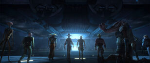 Following the cancellation of The Clone Wars, Bane appeared in the Star Wars Rebels episode "Fighter Flight" in the form of graffiti done by Sabine Wren on the Ghost.[7]