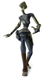 Twazzi was acrobatic saboteur who worked with Bane.[13] She impersonated the Supreme Chancellor until she was exposed and captured by the Jedi.[14] |