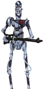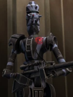 3D was a droid who worked under Bane. He ensured that Taa would allow the Coruscant Guard to free Ziro from the detention center. He also drove Bane and the group away from the Senate building.[1] |
