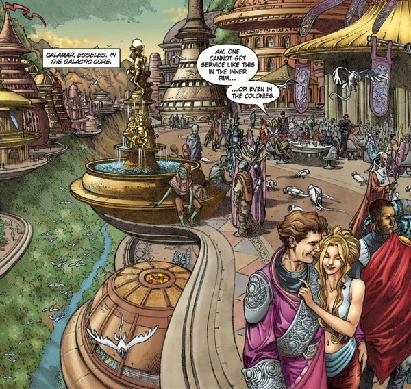 Calamar was the capital city of Esseles. The planet's pleasant climate and rich history conspired to make Calamar a center of high culture, and its suburbs were dominated by vast parks, art centers, holo-production companies, and places of higher learning such as the Darpa Center of History at Calamar. The Hall of Esseles was the government headquarters, located within the city.