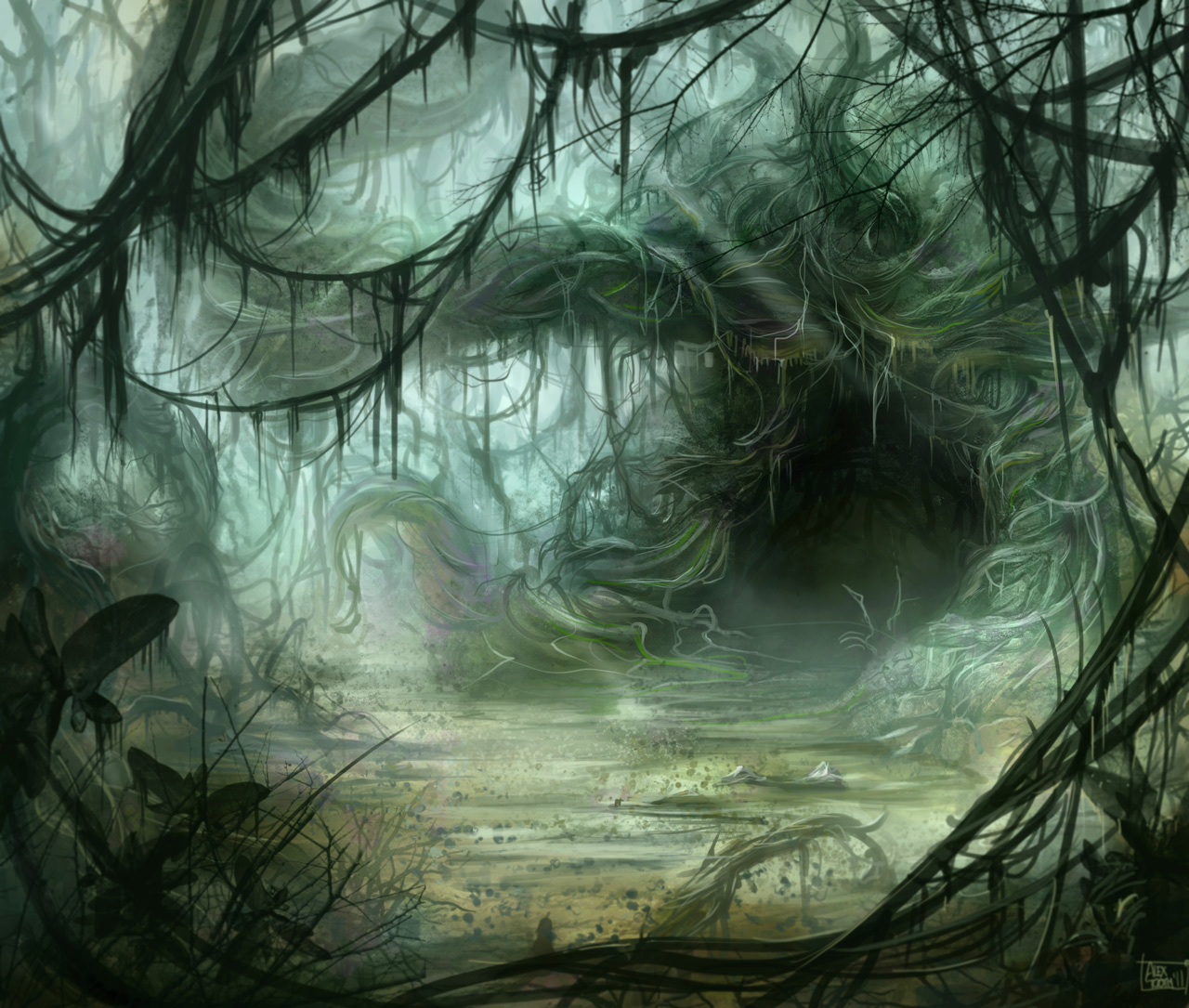 A cave of limestone and dirt, the Dark Side Cave was located deep in the equatorial swamps and contained a vergence in the Force as well as the apparition of a dark jedi. A focal point for the dark side of the Force, the cave challenged the perceptions of anyone who entered into its depths. Drawing visitors in, they often experienced visions of the past, future, or possible futures.[1]