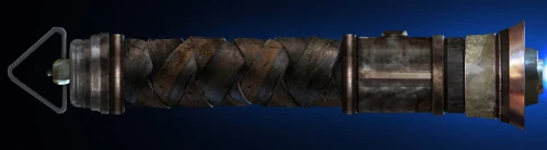This green-bladed lightsaber was originally owned by Cere Junda. Sometime after escaping torture, she removed the kyber crystal and sold it to help pay off Greez Dritus' debts with the Haxion Brood, but kept the hilt. She later gave it to Cal Kestis on Ilum for him to create a new lightsaber with its parts.[2]